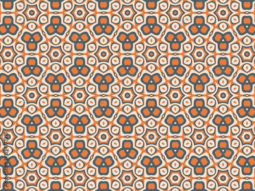Fototapeta premium Seamless geometric pattern in orange and gray, featuring intricate floral shapes for elegant textile or wallpaper design