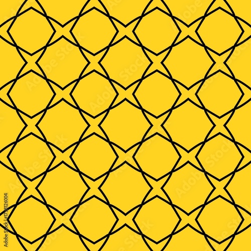 © rahayu, Naklejka premium Seamless geometric pattern with black lines on yellow background