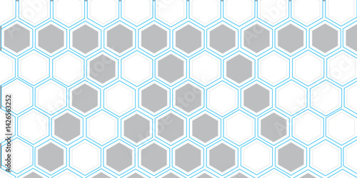 Fototapeta premium Seamless geometric pattern with blue flowers and honeycomb design