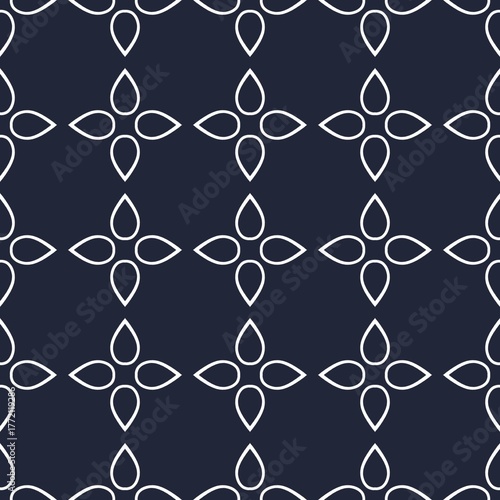 © rahayu, Fototapeta premium Seamless geometric pattern with floral motifs in navy blue and white