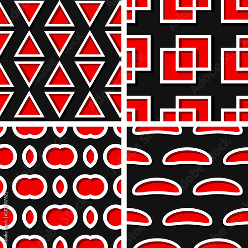 Obraz premium Seamless geometric patterns. Set of black 3d backgrounds with red elements