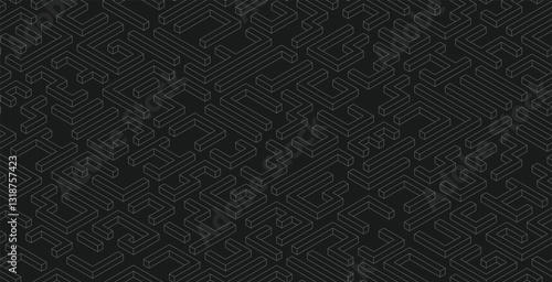 Fototapeta premium Seamless geometric shapes maze on black background.