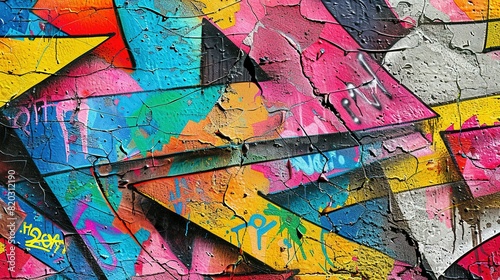 © Ahmad-Muslimin, Naklejka premium Seamless Graffiti Pattern on Weathered Concrete Wall: Vibrant Urban Art