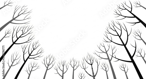 © Pawel, Obraz premium Seamless gray bare trees silhouette upward view pattern