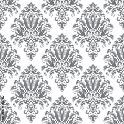 Fototapeta premium Seamless Gray Damask Pattern On White Background