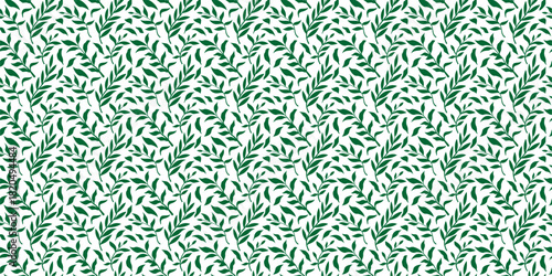 © Muhammad Nashieh, Fototapeta premium Seamless Green Botanical Leaf Pattern, Natural Foliage Background Vector illustrations EPS file, Fabric, Wallpaper, Packaging and Eco Design