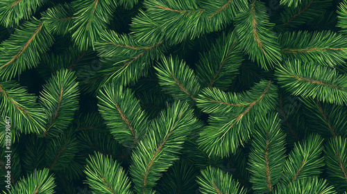 Obraz premium Seamless Green Christmas Fir Tree Branches Festive Holiday Background Pattern