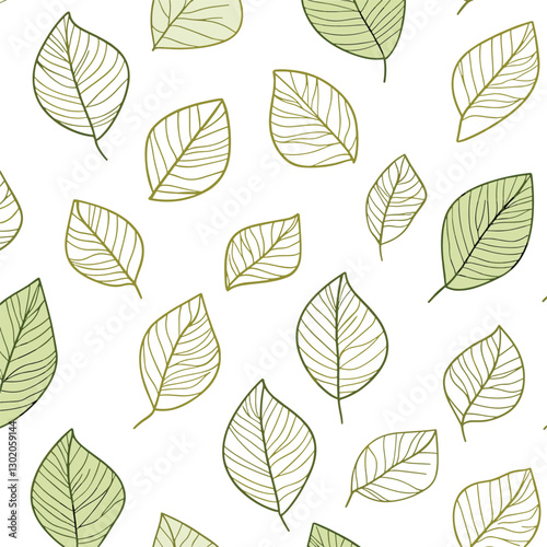 Obraz premium Seamless Green Leaf Pattern on a White Background
