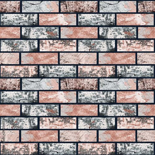 © brusnika9, Obraz premium Seamless grey, brown brick wall.
