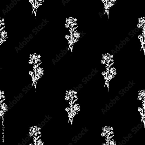 Fototapeta premium Seamless hand drawn pattern of abstract rose flowers isolated on black...