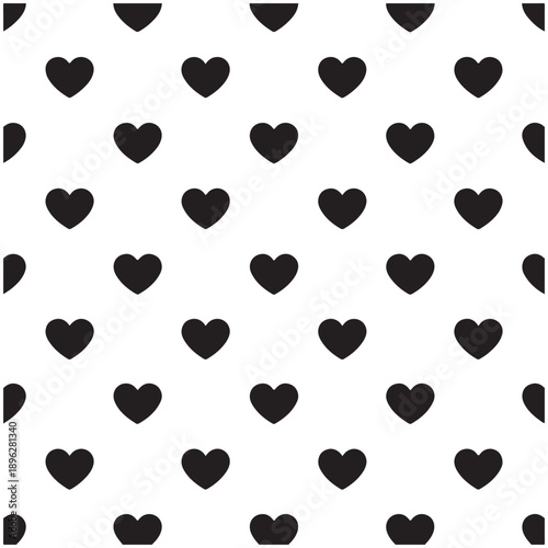 © Md Jasim islam, Obraz premium Seamless heart pattern vector background with black love icon