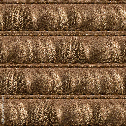 © breakermaximus, Obraz premium Seamless 4k photo texture material of ribbed golden colored leather surface with seams.
