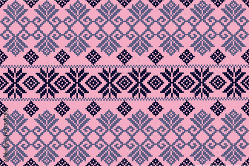 © Pink Frog, Fototapeta premium seamless knitted pattern, Purple background, pixel, pattern, wallpaper, decor, design, textile, tile, blue, flower ,seamless