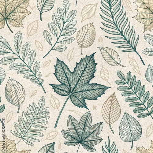 Fototapeta premium Seamless Leaf Patterns in Nature Artistic Design Botanical Illustration...