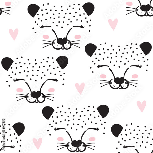 © Larienn, Naklejka premium seamless leopard face pattern vector illustration