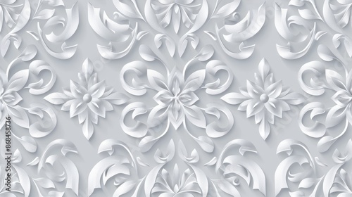 © suyu, Fototapeta premium Seamless light gray floral motif vector pattern wallpaper for wedding, anniversary, and celebration invitations. Elegant timeless design for sophisticated event stationery and decorative backgrounds