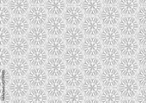 © ParamePrizma, Fototapeta premium Seamless light texture of three-dimensional elegant flower petals based on hexagonal grid 3D illustration