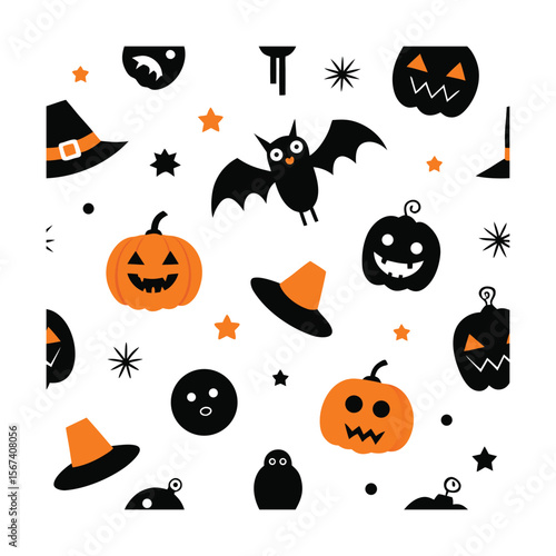 © MstZorina, Fototapeta premium seamless line art Halloween pattern design elements