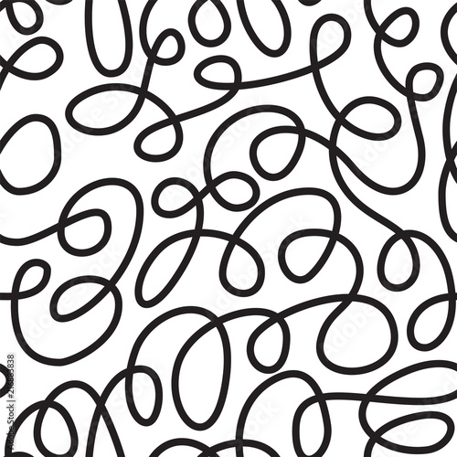Fototapeta premium Seamless linear pattern with thin curl lines and scrolls. Vector illustration