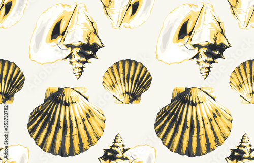 © Karmina, Obraz premium Seamless marine sea pattern.