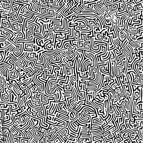 Obraz premium Seamless maze pattern in black and white, geometric labyrinth style, abstract...