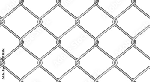 Fototapeta premium Seamless mesh netting. Realistic geometric texture. Graphic design element for website background, catalog. Steel wire wall on white. Vector illustration.