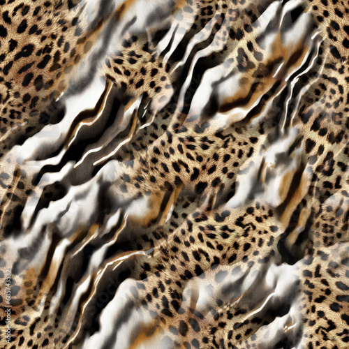 Naklejka premium Seamless mixed animal texture, zebra and leopard pattern.