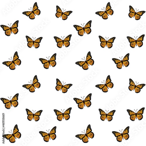 Fototapeta premium Seamless monarch butterfly background pattern on white