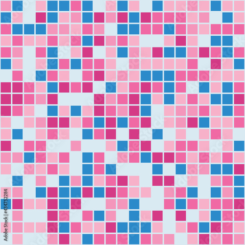 © Ольга Фурманюк, Fototapeta premium Seamless mosaic pattern.Endless background with tiles. Multicolored backdrop with square elements. Simple wallpaper. Isolated. Vector illustration.