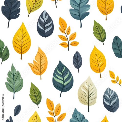 Fototapeta premium Seamless Natural Leaf Pattern with Vibrant Foliage on Minimalist White...
