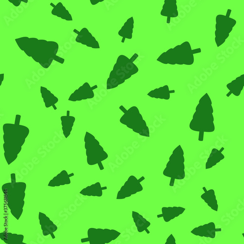 © Tilra, Fototapeta premium Seamless nature pattern with cute cartoon green pines, doodle vector drawing