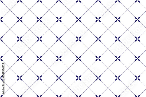 © mhakim275, Fototapeta premium Seamless navy blue floral pattern on white background.