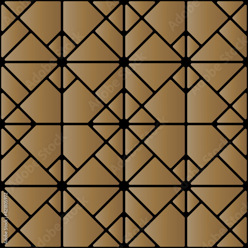 © asesidea, Naklejka premium Seamless of diagonal square pattern. Design regular tile of gold on black background. Design print for illustration, texture, wallpaper, background.