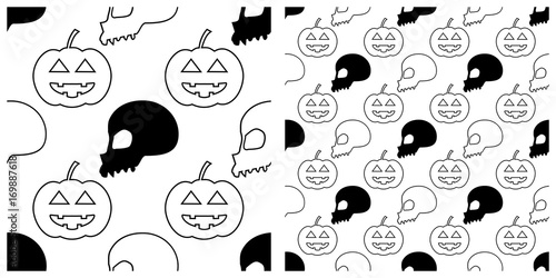 Fototapeta premium Seamless of Halloween pattern on transparent background. Single pattern is shown in the left. The example of assembly seamless is shown in the right.