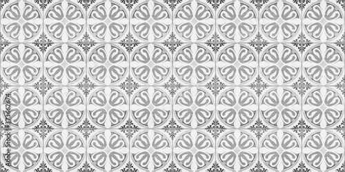 Fototapeta premium Seamless old gray grey white vintage shabby patchwork mosaic motif tiles stone concrete cement wall texture background with circle flower leaf pattern print