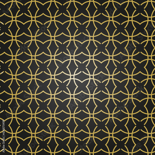 Fototapeta premium Seamless ornament in arabian style. Geometric abstract black and golden background. Pattern for wallpapers and backgrounds