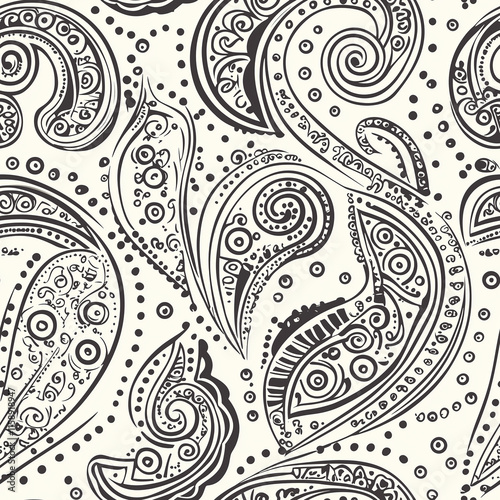 © Jae, Fototapeta premium Seamless paisley pattern design with boteh motifs mughal influence jacquard looms artistic textile print elegant home decor