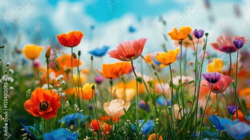 © Ameer, Fototapeta premium Seamless panoramic background of vibrant colorful flowers, lush and decorative.