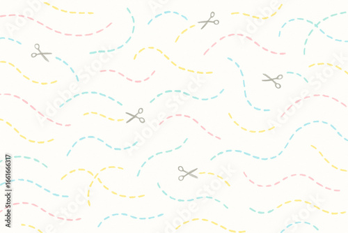 © sakuma., Naklejka premium Seamless pastel hand-drawn cutting line pattern with scissors