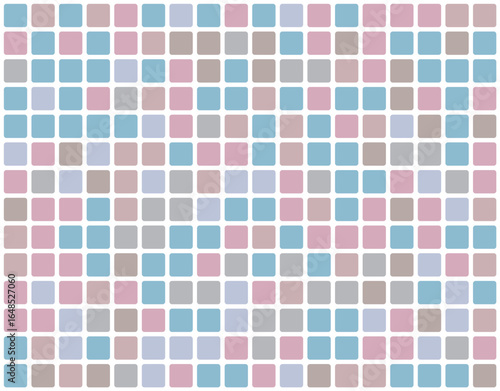 © Pixel Park, Fototapeta premium Seamless pastel square grid pattern background. Colorful pink blue gray tiles in modern geometric layout. Perfect for fabric, web, and surface design.