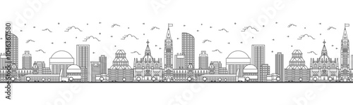Obraz premium Seamless patter with outline Ottawa Canada City Skyline with Modern Buildings Isolated on White. Ottawa Cityscape with Landmarks.