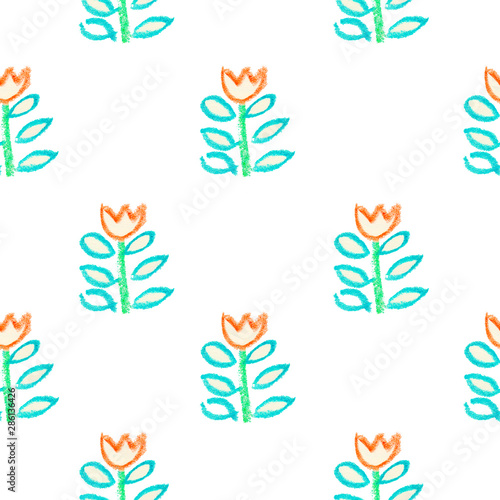 Fototapeta premium Seamless pattern as children's drawing wax crayons