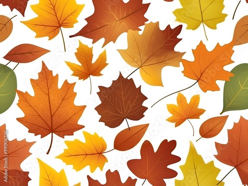 © ArtificialGen, Obraz premium seamless pattern autumn leaves background