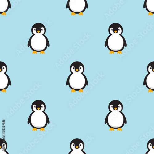 Obraz premium Seamless pattern Baby Penguin standing on sky blue background. Cute Penguin...