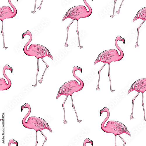 Obraz premium Seamless pattern background with pink flamingo, vector EPS 10