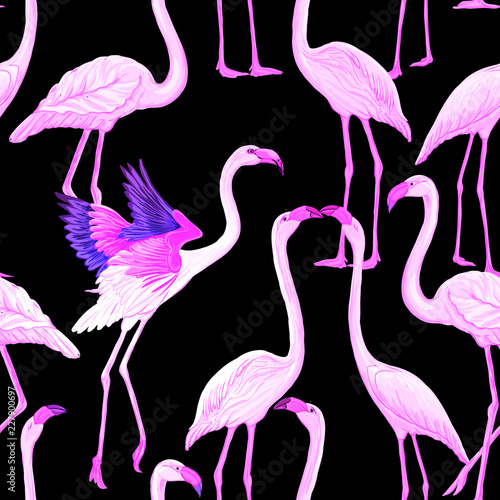 Fototapeta premium Seamless pattern, background. with tropical plants and flowers.
