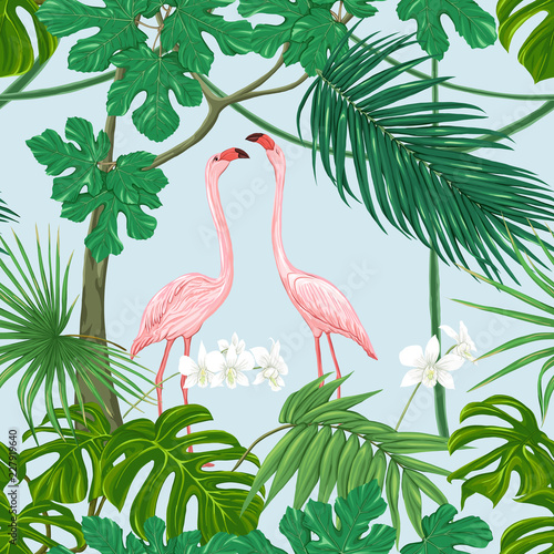 Fototapeta premium Seamless pattern, background. with tropical plants and flowers.