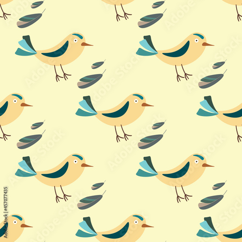Obraz premium seamless pattern birds and feathers yellow vector