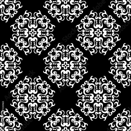© Liudmyla, Fototapeta premium Seamless pattern. Black flowers on white floral background