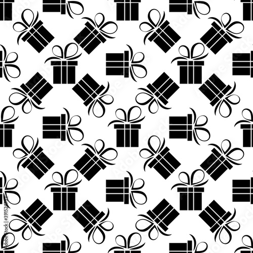 Obraz premium seamless pattern black silhouette gift box. Vector flat illustration
